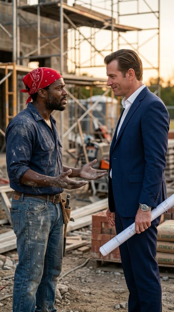 El trabajador bajó lentamente del andamio. No temblaba. No agachó la cabeza. Lo miró directamente a los ojos con una determinación inquebrantable. —¿Usted cree que puede robar mis esfuerzos usando el miedo? Se equivoca. Yo no me muevo de aquí —sentenció el obrero.