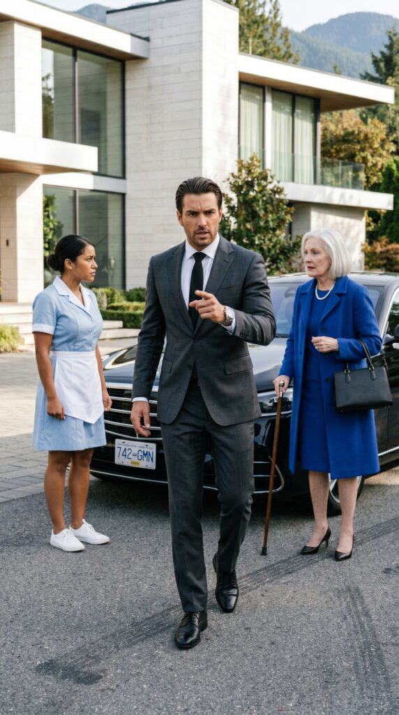 El chofer sostenía la puerta con guantes blancos, mientras su hijo, impecablemente vestido de traje, observaba la escena con una calma aparente. Todo parecía transcurrir con la normalidad de la clase alta, hasta que un grito desesperado rompió el silencio de la propiedad.